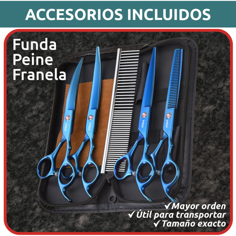 Tijeras Peluqueria Mascotas Vgr Corte Recto Curva Pulir Kit