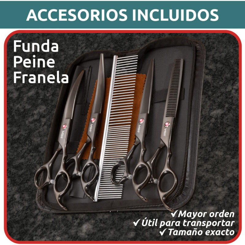 Tijeras Peluqueria Mascotas Vgr Corte Recto Curva Pulir Kit