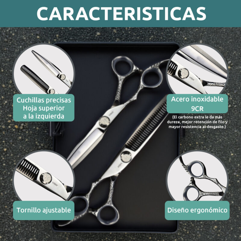 Tijeras Peluqueria Kit Vgr De Corte Entresacado Y De Pulir Para ZURDOS