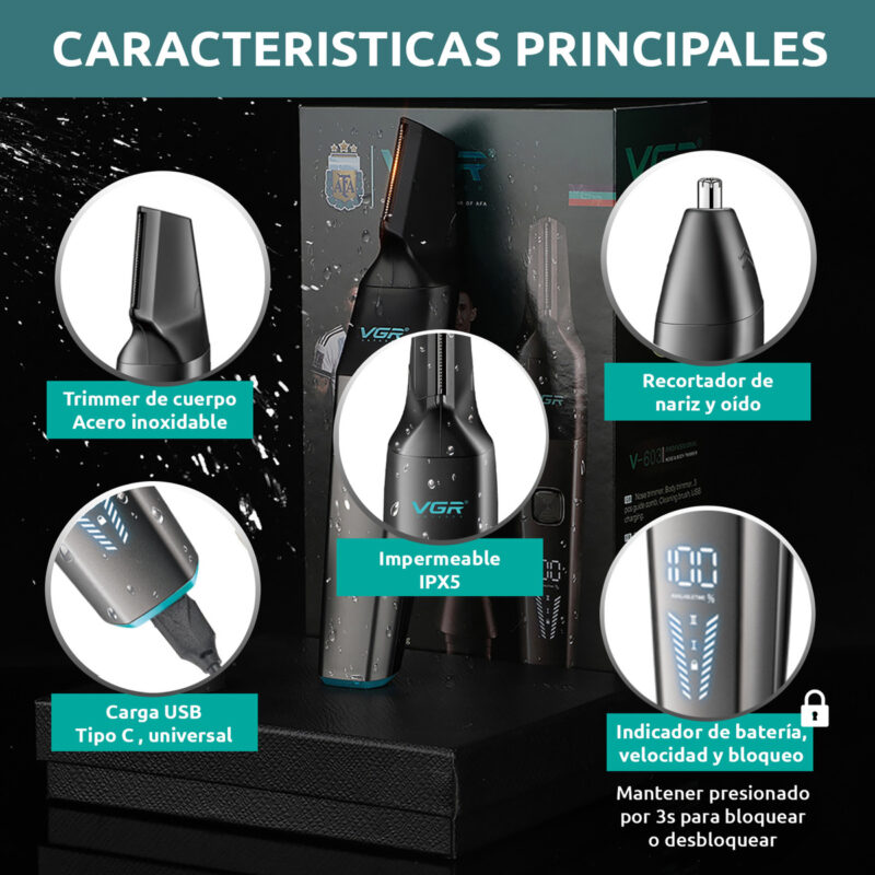 Trimmer Nariz Oído Corporal Nasal 2en11 Vgr V-603 Turbo Ipx5