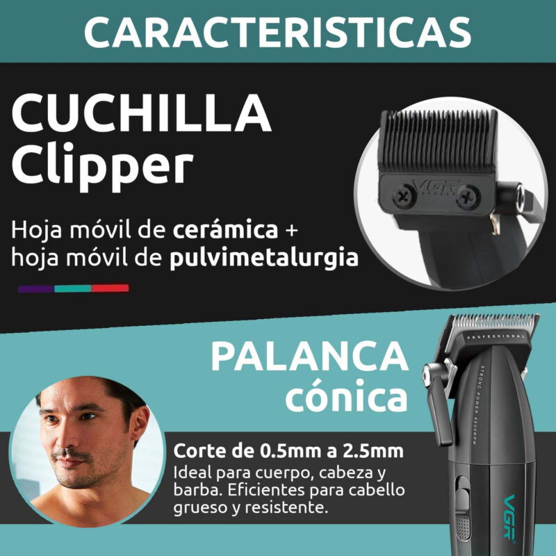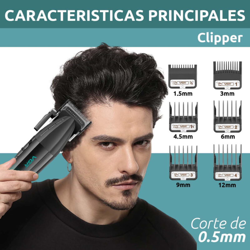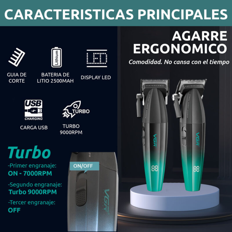 Máquina Corta Pelo Profesional VGR V-003 Barbería 9000 RPM – La mejor máquina de cortar pelo para barberos, peluquerías y uso doméstico. Esta cortadora de pelo combina alta potencia con precisión, gracias a su motor de 9000 RPM y cuchillas de cerámica y pulvimetalúrgicas. Ideal para cualquier entorno, esta máquina de cortar pelo profesional garantiza un corte impecable y duradero.