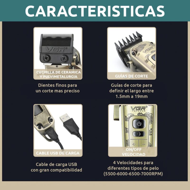 Maquina de Cortar Pelo VGR V-005 Metal Regulador Velocidad