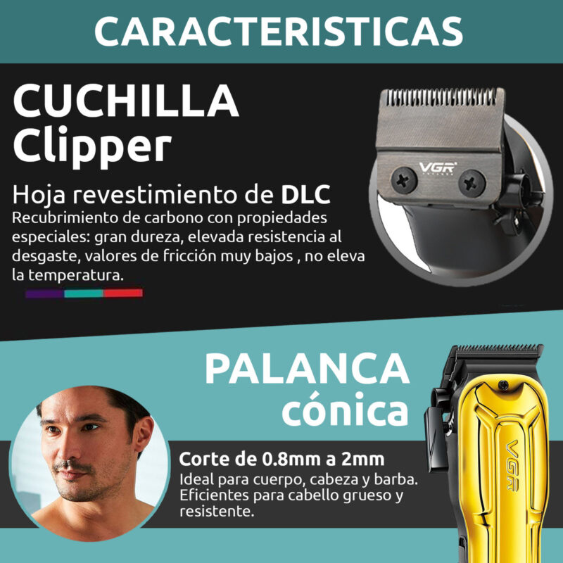 Cortapelo Inalámbrica Hombre VGR V-138 Clipper Metal Usb Led