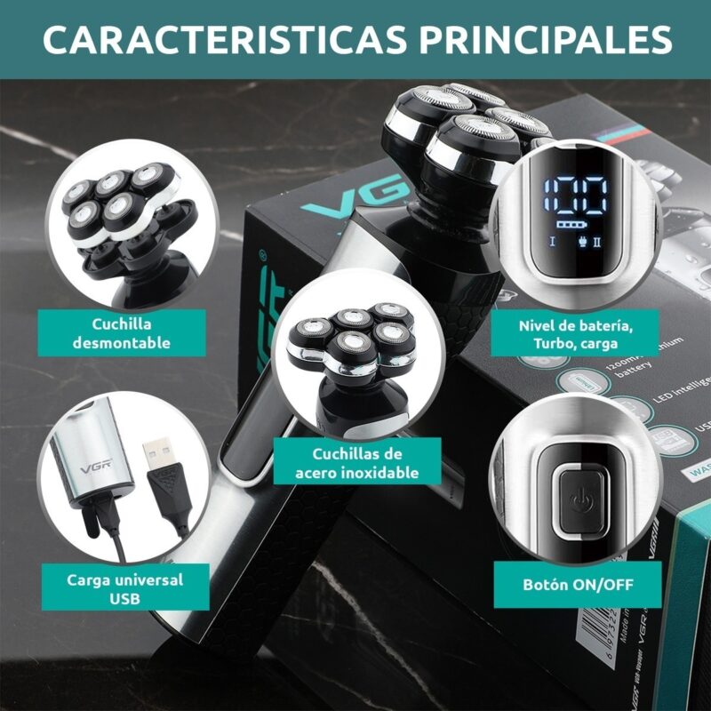 Afeitadora Eléctrica Hombre VGR V-385 Usb Magnetica 5D IPX5