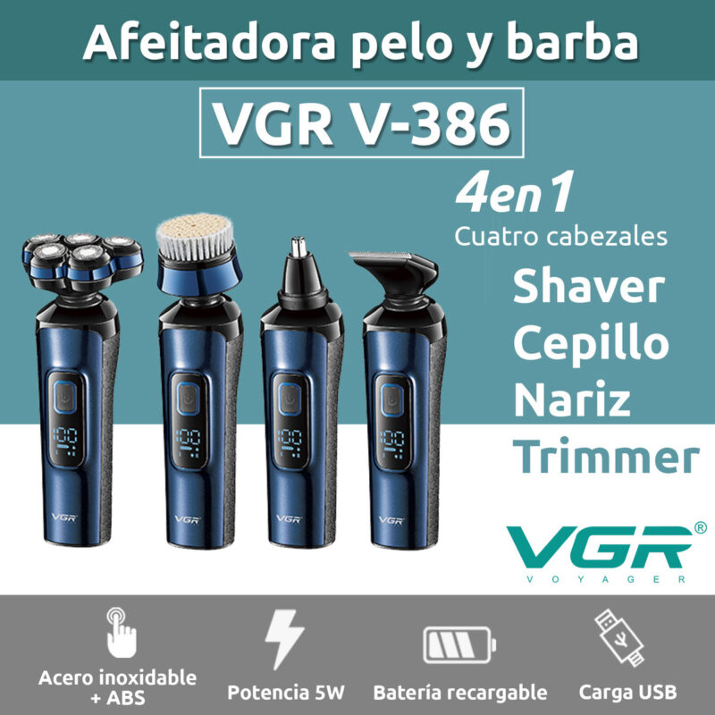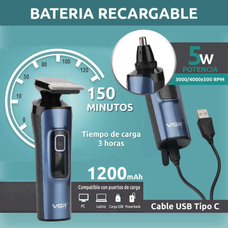 Máquina Cortar Pelo Barba Nariz VGR V-386 Grooming 4en1 IPX5