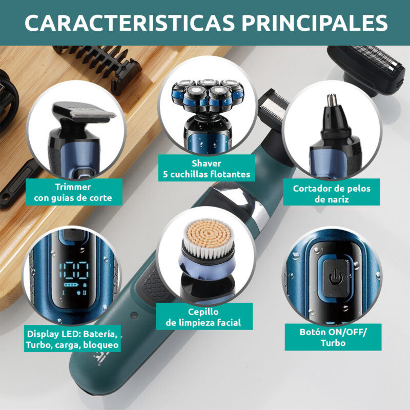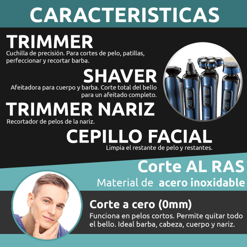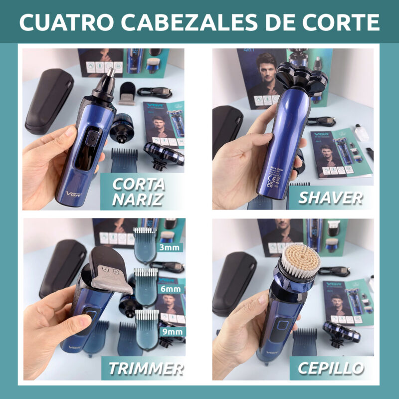 4 en 1. Cortadora de precisión, limpieza facial, recortadora de nariz, afeitadora.