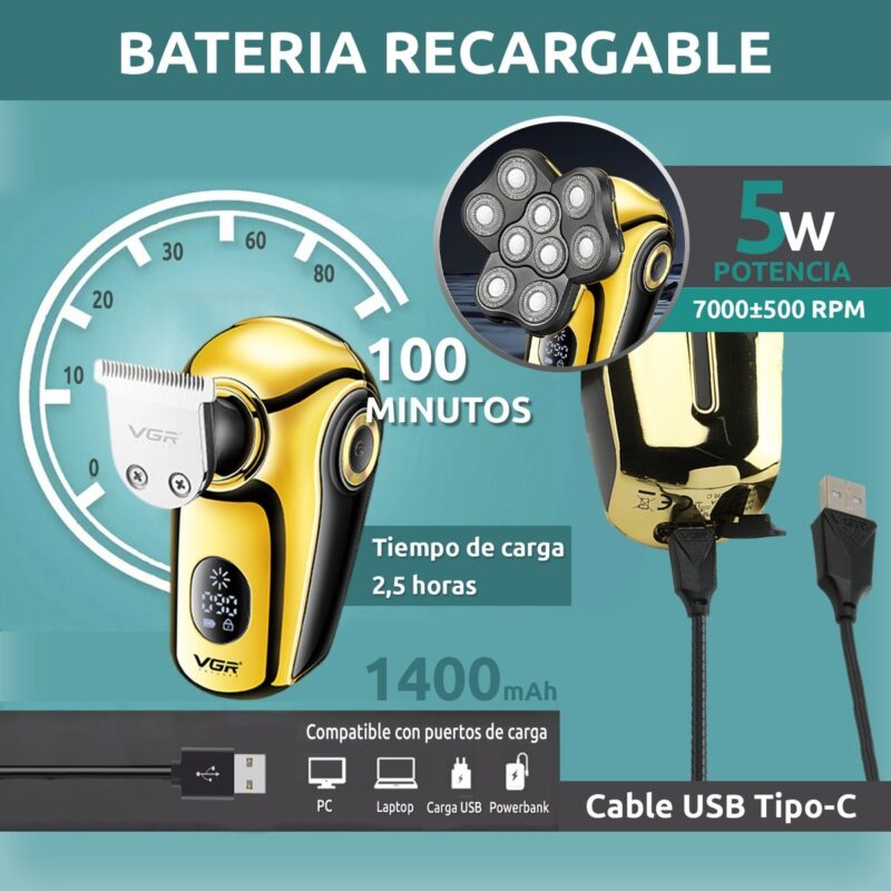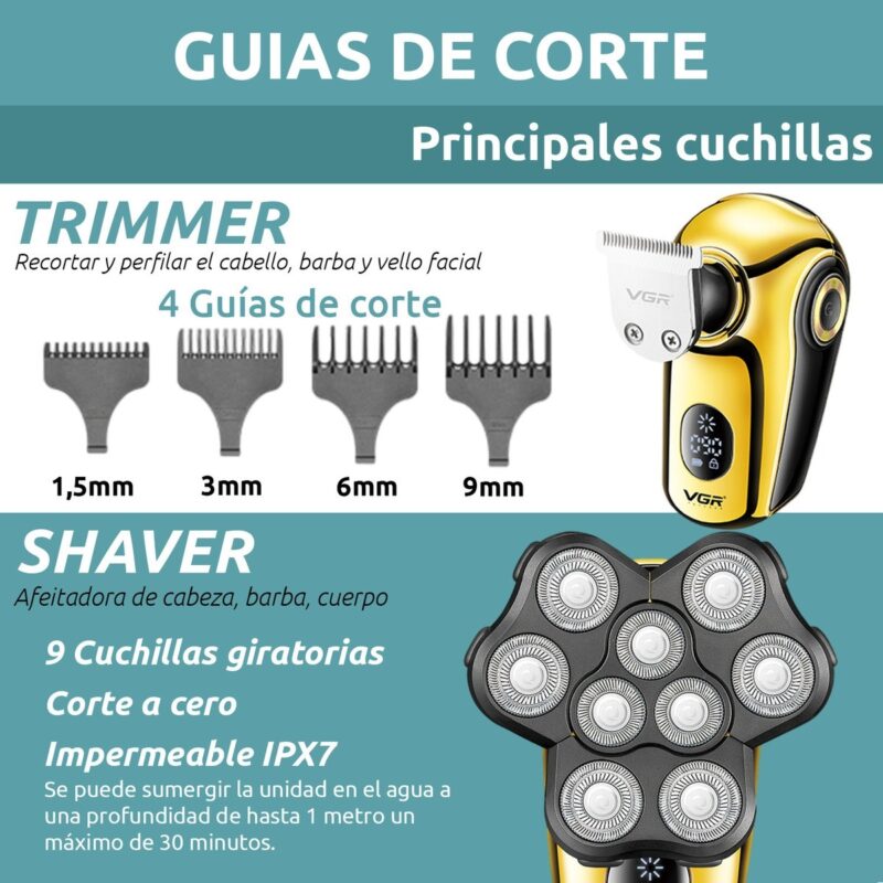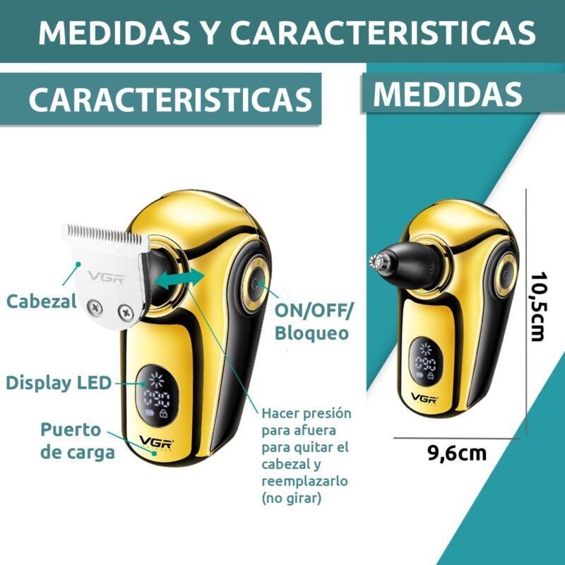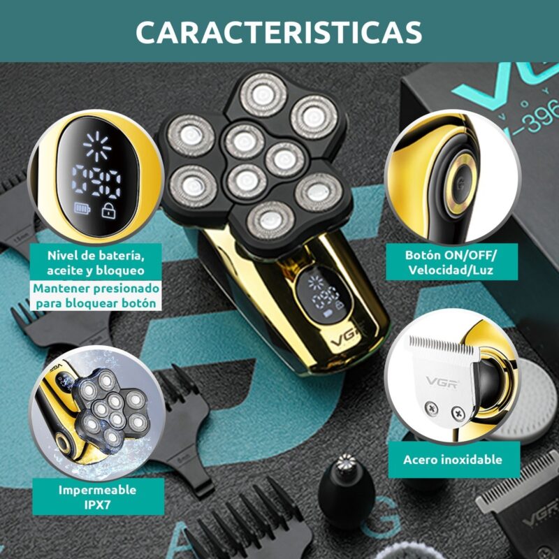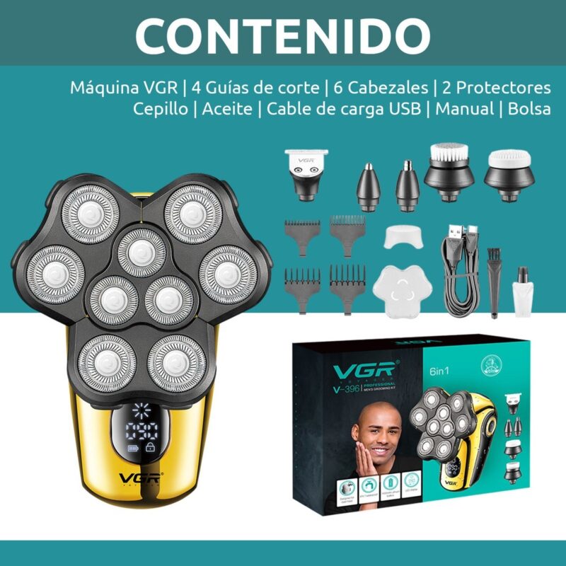 Afeitadora Eléctrica Grooming Kit 6en1 VGR V-396 Calva IPX7