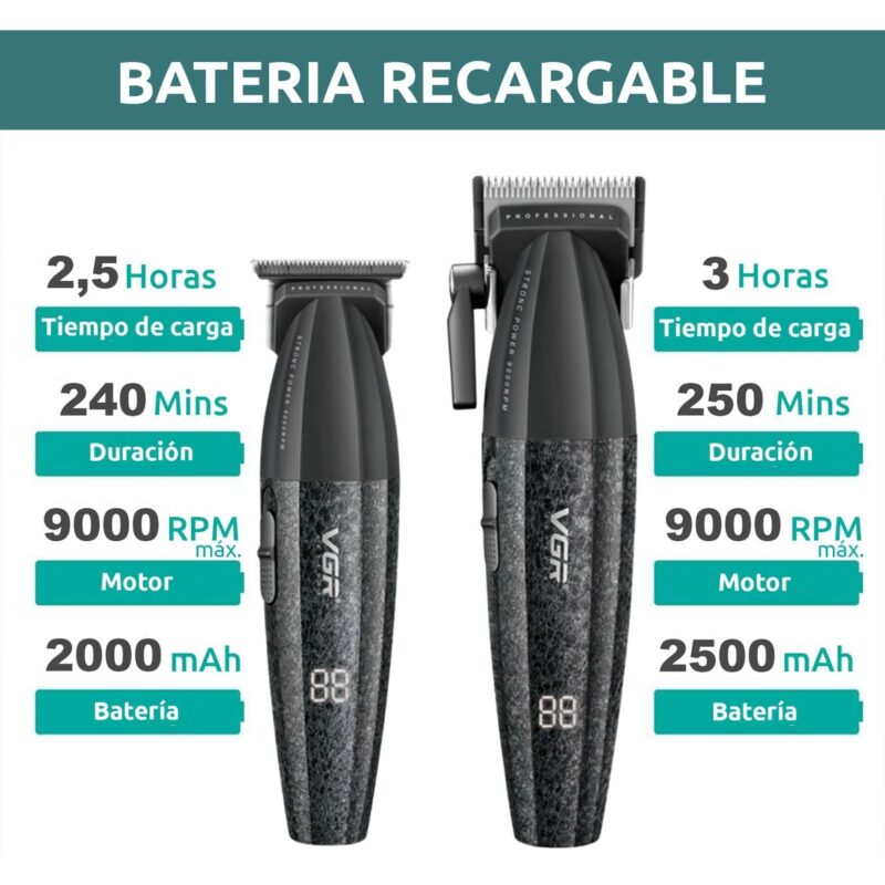Kit Máquina Barbería Pro Clipper Trimmer VGR V-640 9000 Rpm