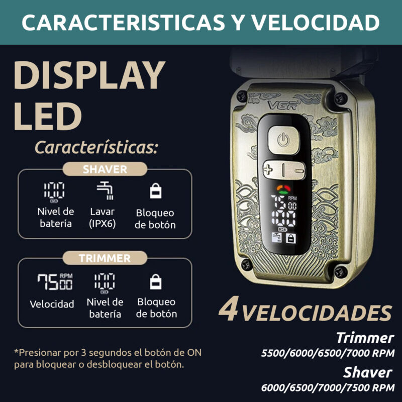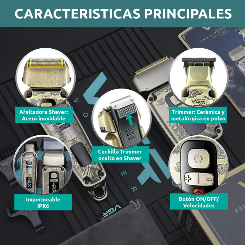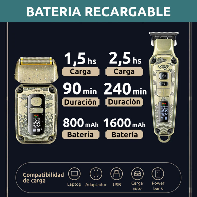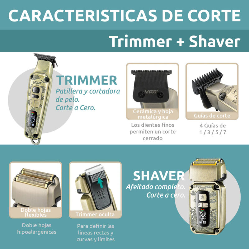 Cortadora Pelo Afeitadora Barba Set 2en1 VGR V-641 Metal Usb
