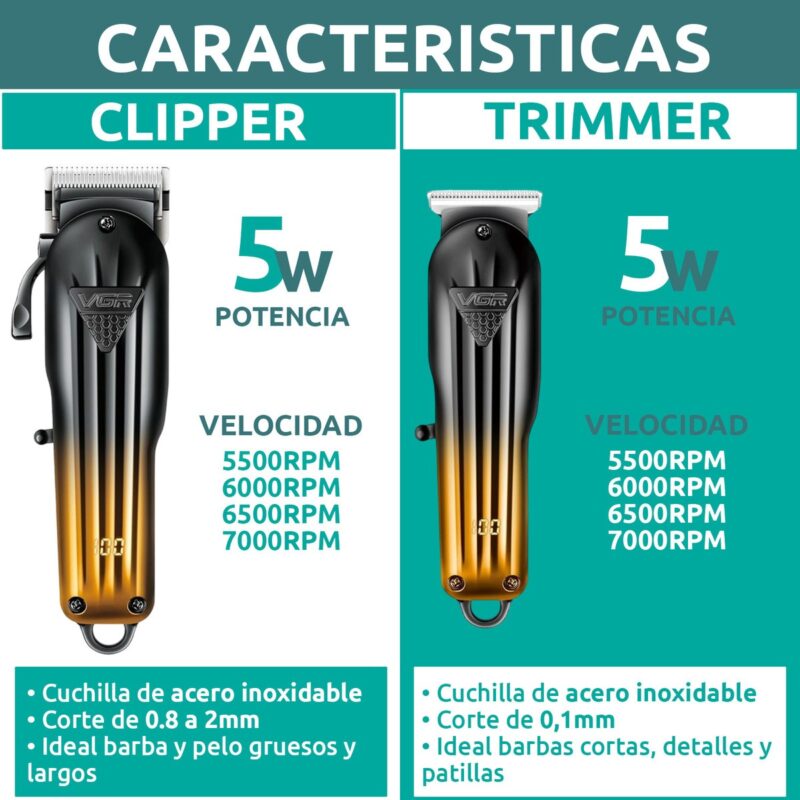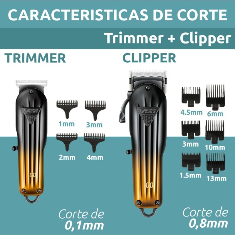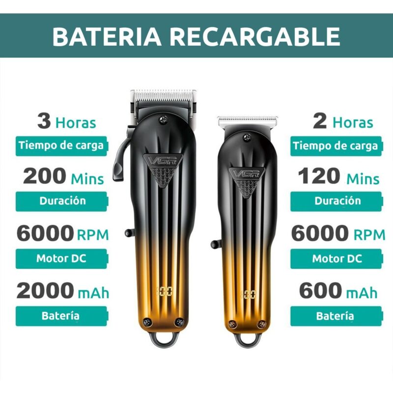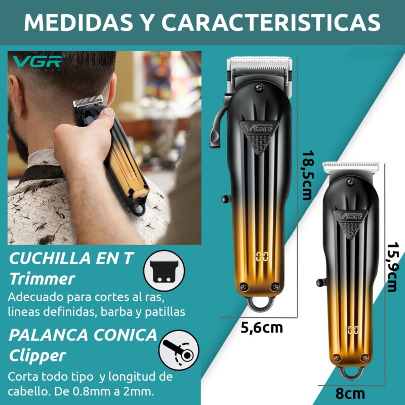 Kit Máquina Barbería Clipper Trimmer VGR V-646 Usb 10 Guías