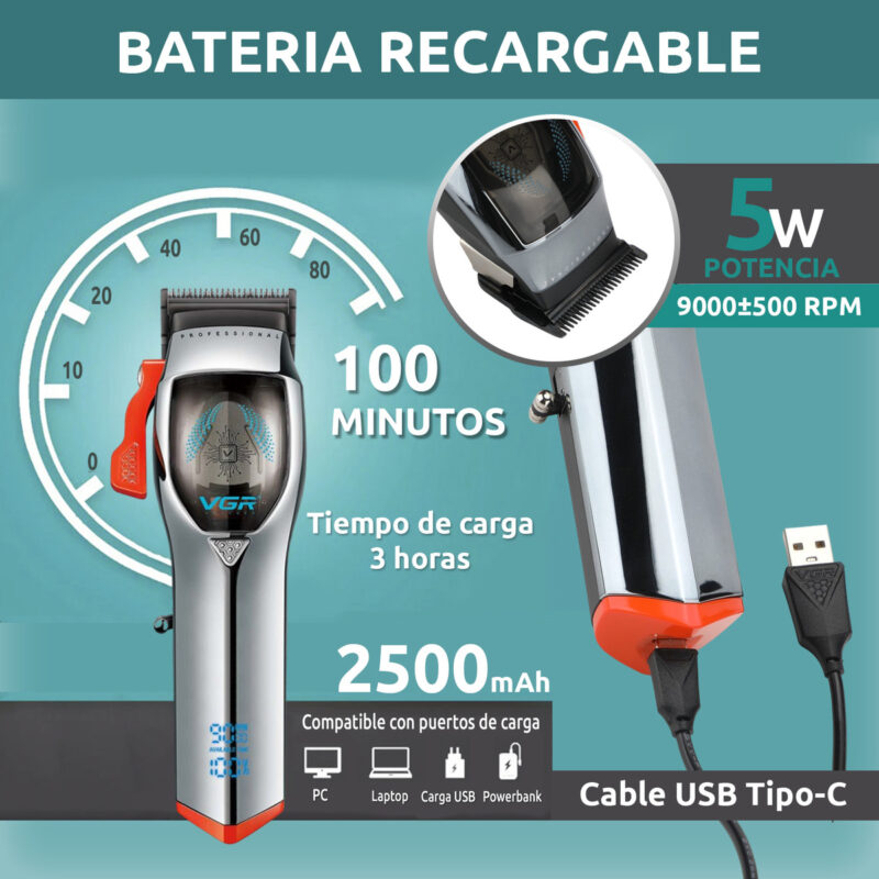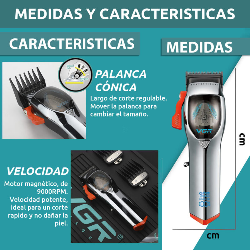 Máquina Barbería Profesional VGR V-647 Magnético 9000 RPM