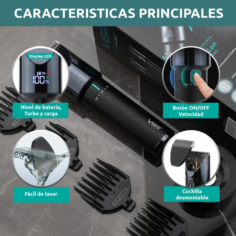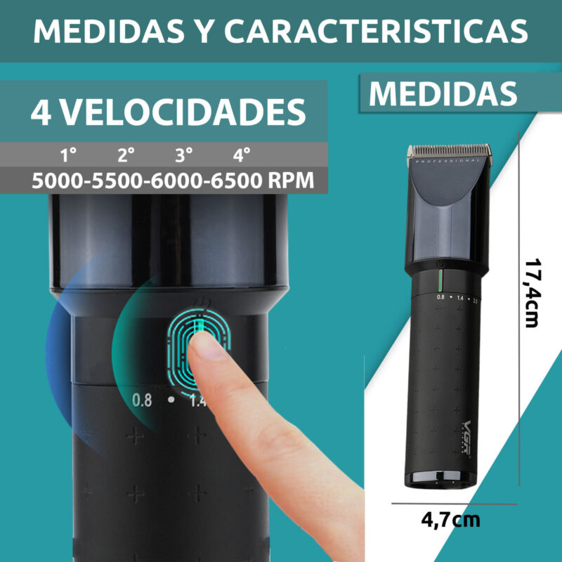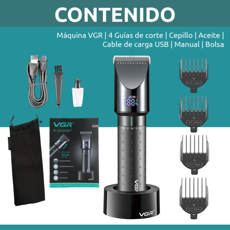 Máquina Corta Pelo Profesional VGR V-698 Base Carga Led Usb