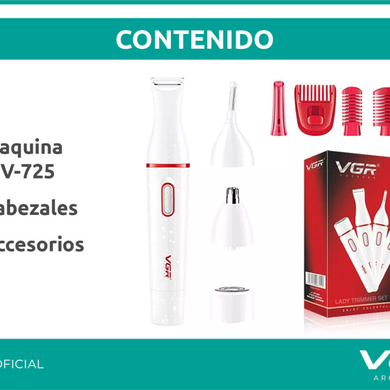 RECORTADORA AFEITADORA VGR V-725 MUJER 4 EN 1 PARA CEJAS, CUERPO, NARIZ, OIDO SIN DOLOR. PORTATIL A PILAS.