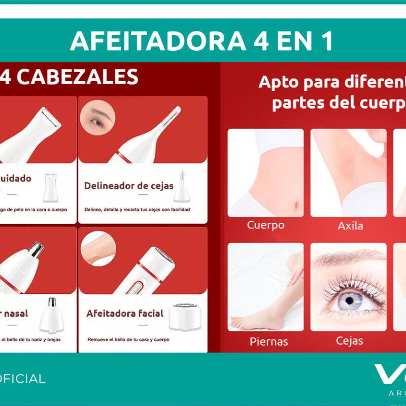 4. Afeitador facial y de cuerpo: conveniente usar cuando el vello esta corto. Elimina con mayor rapidez.