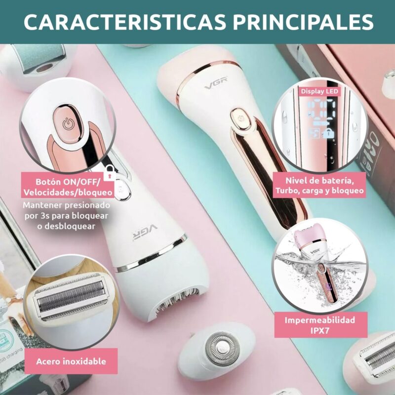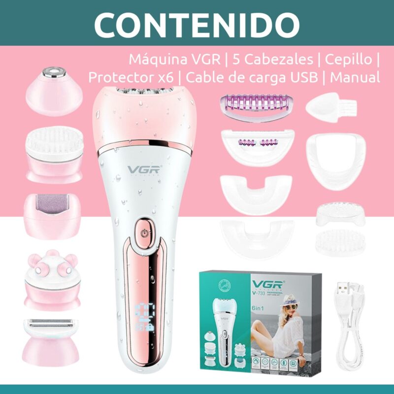 Depiladora Eléctrica Mujer Facial 6 en 1 VGR V-733 Usb IPX7