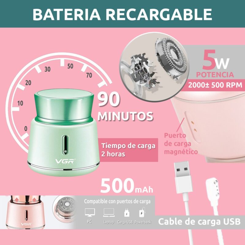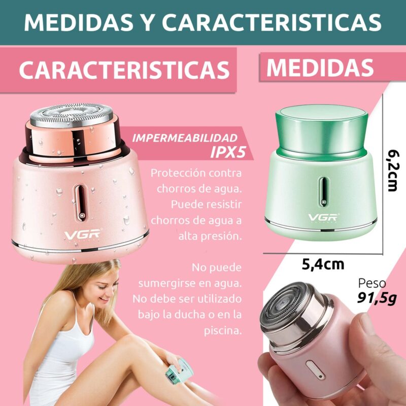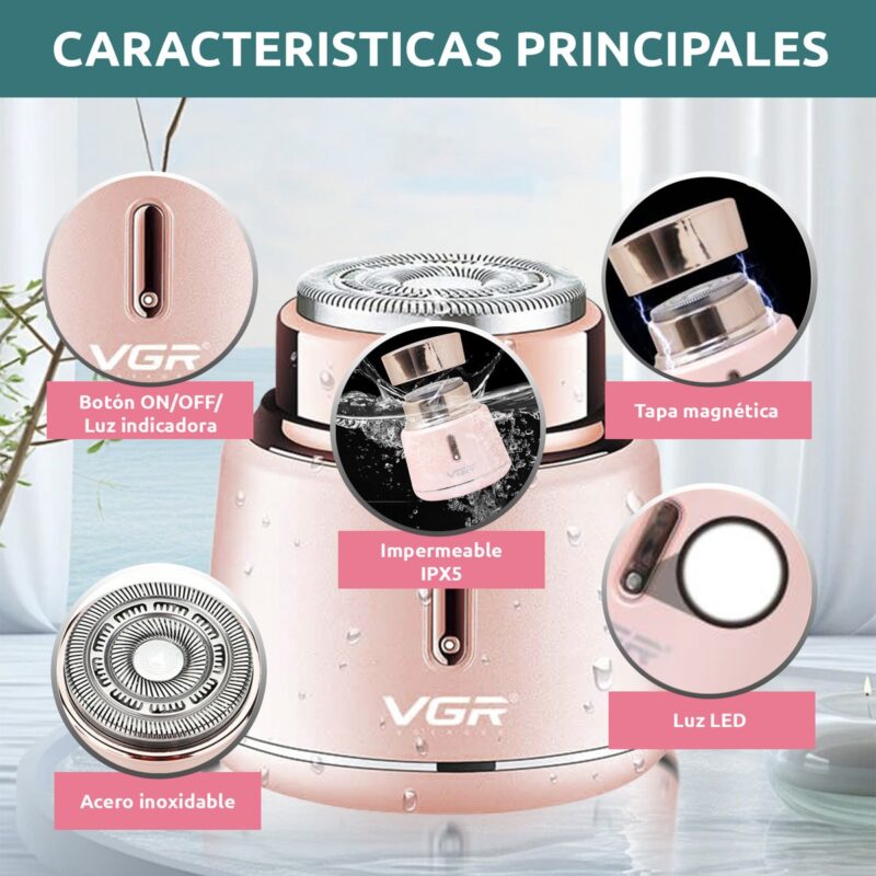 Afeitadora Eléctrica Mujer Shaver VGR V-737 Usb Led IPX5