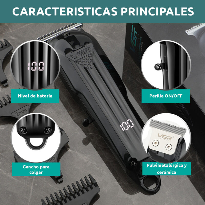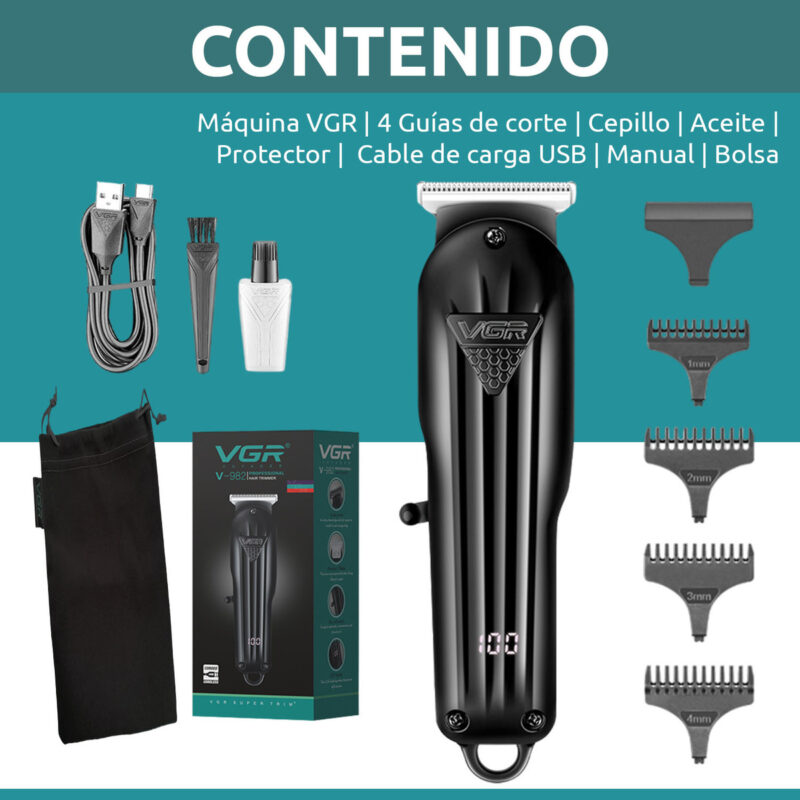 Máquina Patillera Profesional Recargable VGR V-982 Usb Led