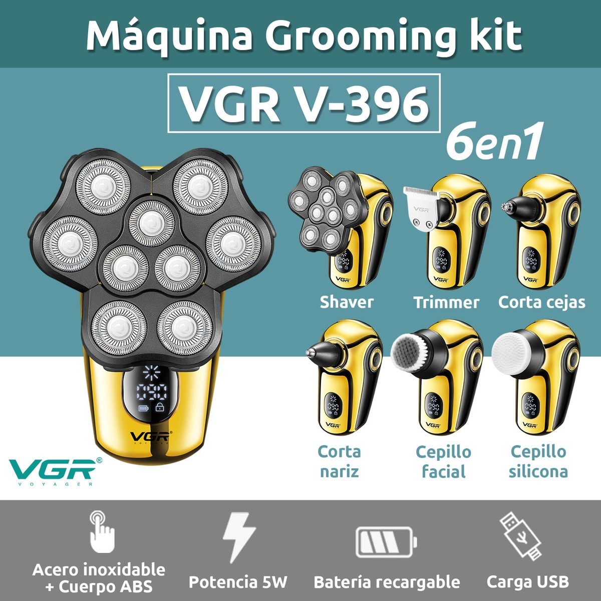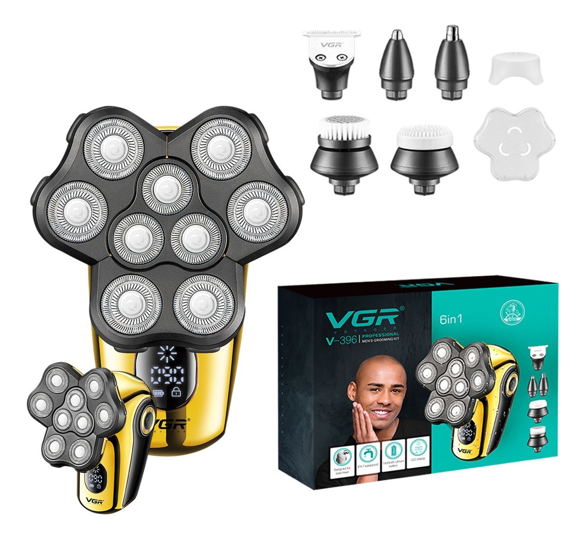 Afeitadora Eléctrica Grooming Kit 6en1 VGR V-396 Calva IPX7