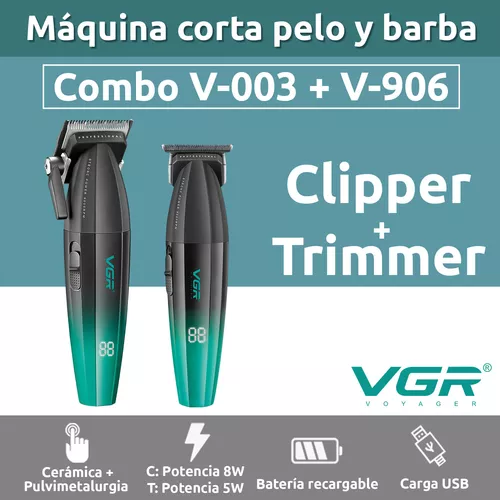COMBO VGR MAQUINA DE CORTAR PELO TURBO 9000RPM CLIPPER V-003 + TRIMMER V-906
