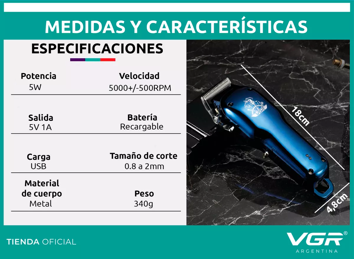 Cortadora De Pelo Barba Vgr V-679 Ajuste Hoja Recargable Azul