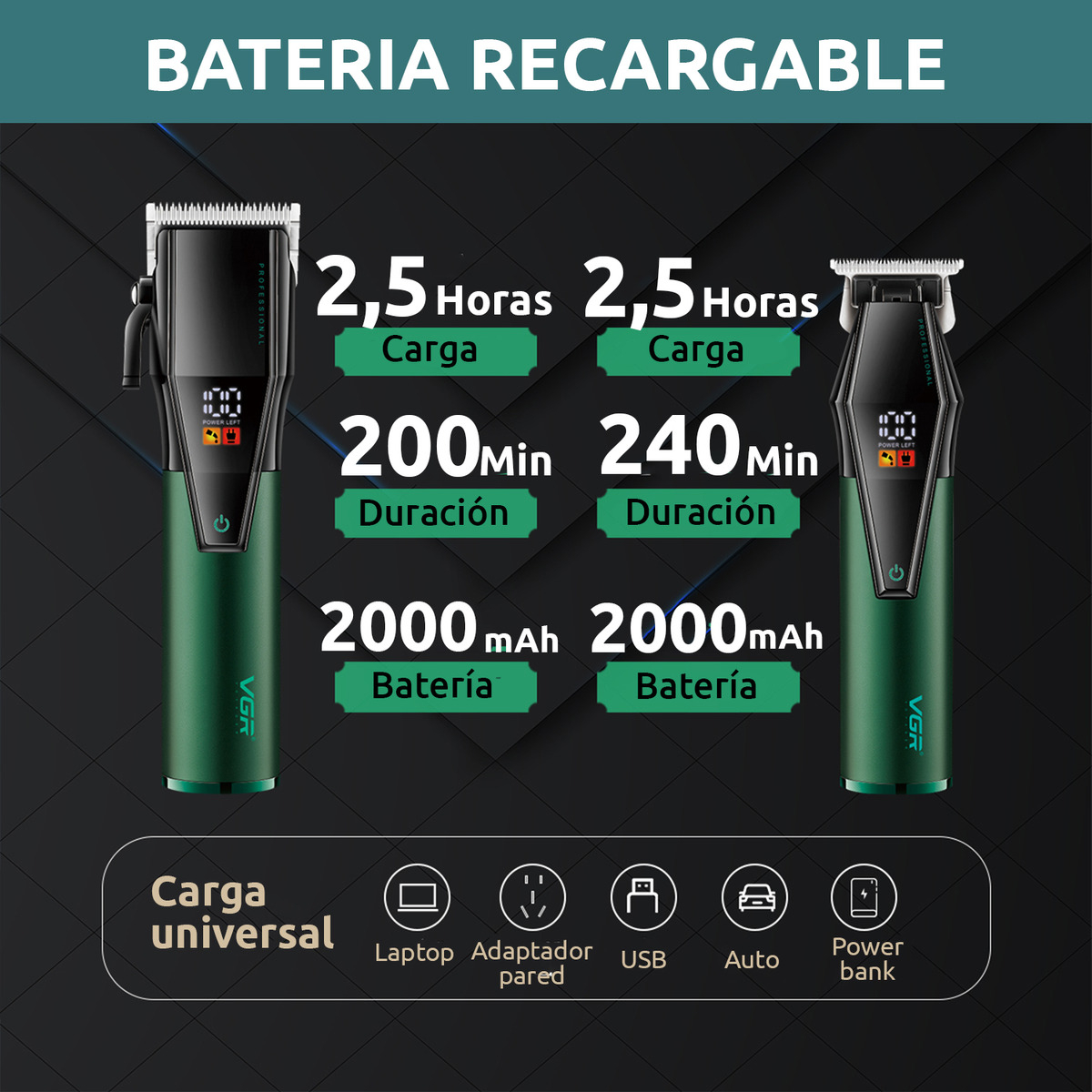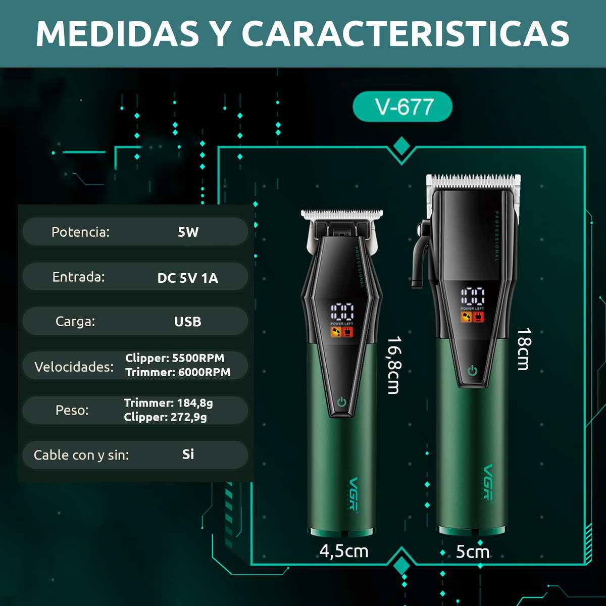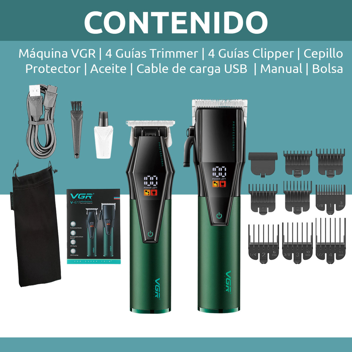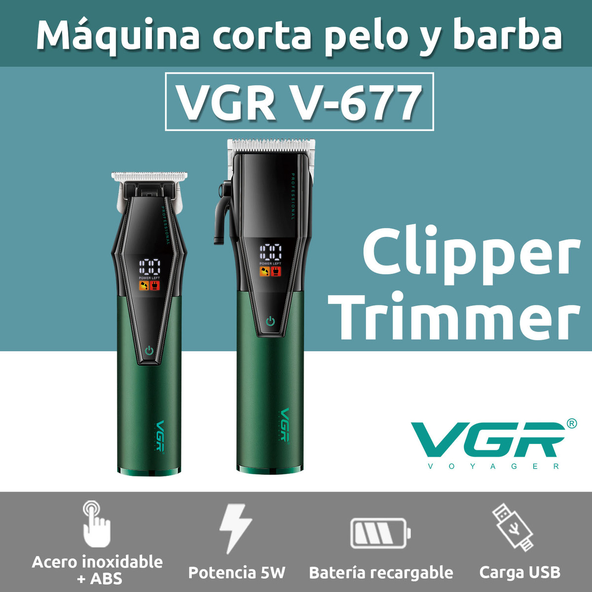 Cortadora Pelo Trimmer Profesional Set 2 en 1 VGR V-677 Usb