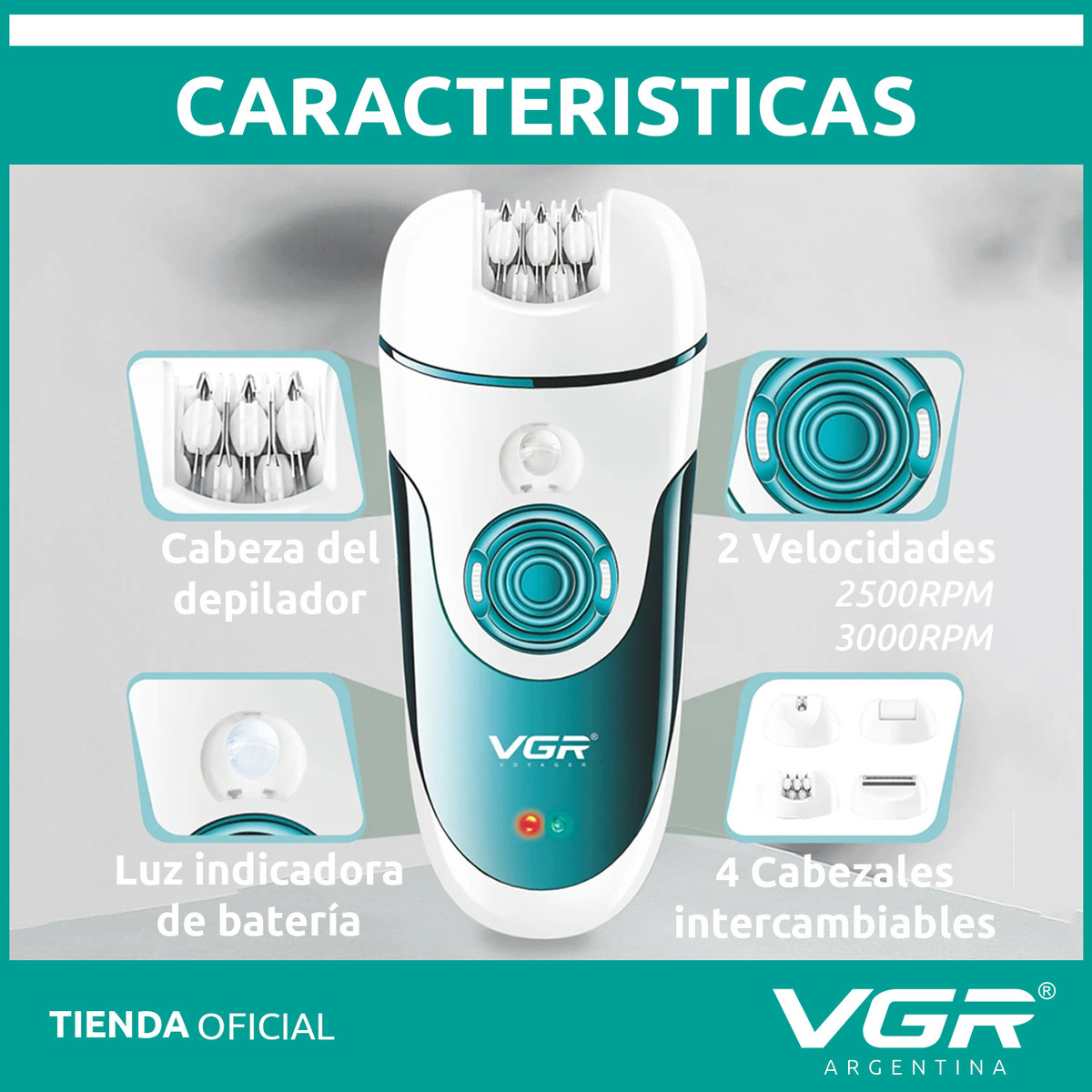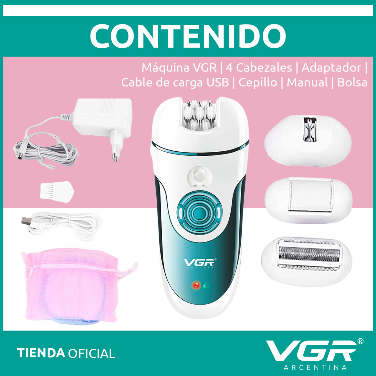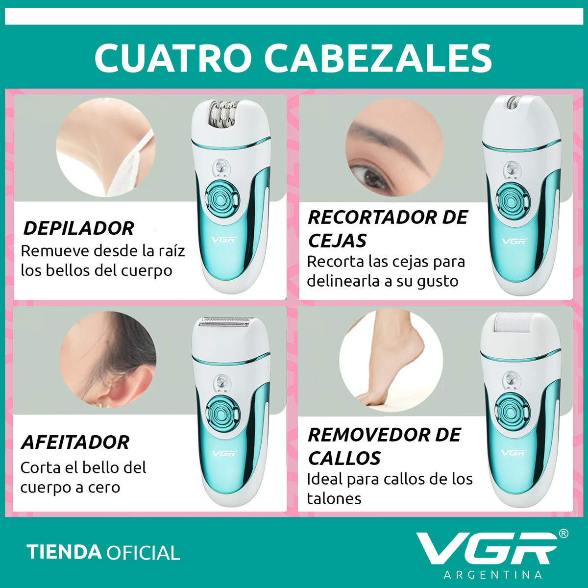 Depiladora Eléctrica Mujer VGR V-700 Cara Cuerpo Callos 4en1 Blanco
