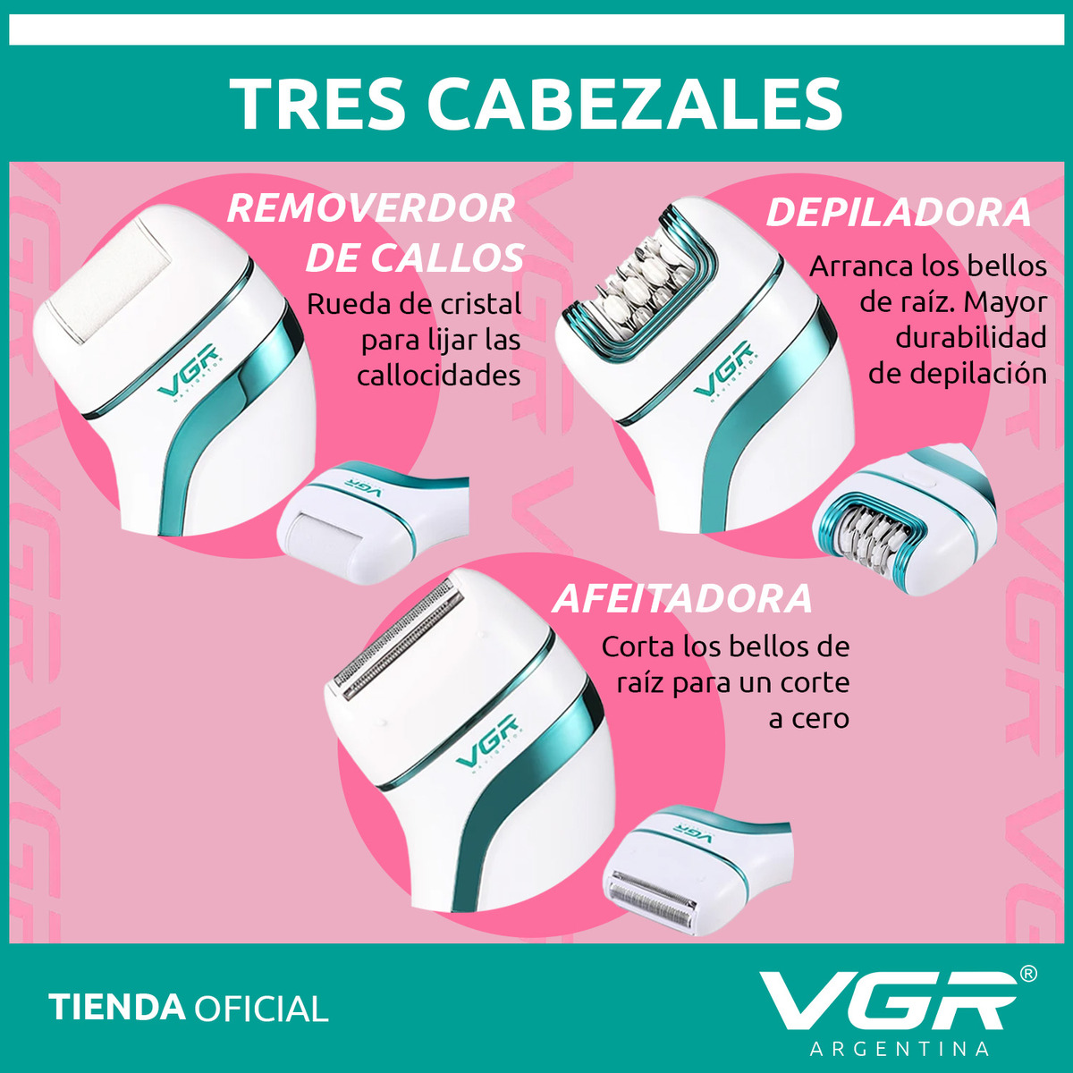 Depiladora Eléctrica Mujer VGR V-713 Cara Cuerpo Callos 3en1