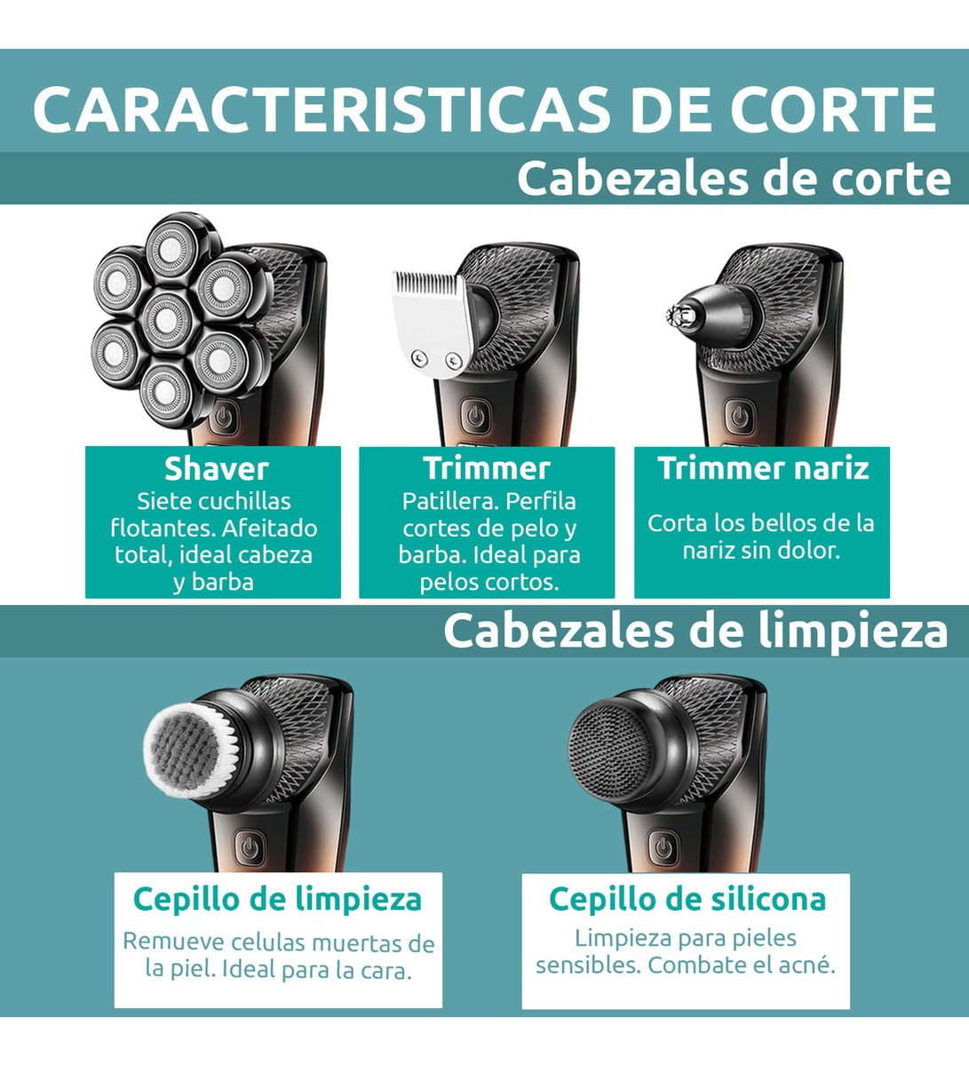 Afeitadora rotativa- recortadora de precisión- recortadora de nariz- cepillo de limpieza facial- cepillo de limpieza de silicona.