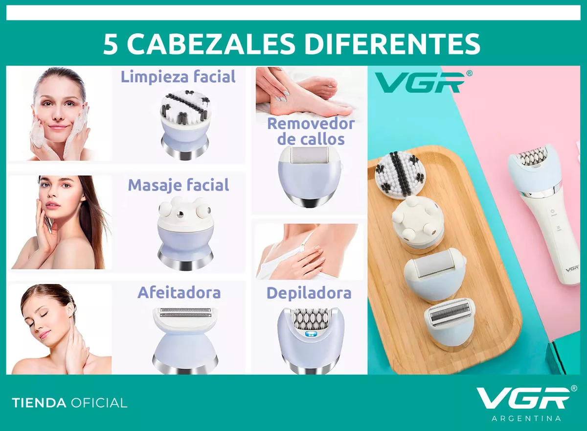 -Funciones: Cabezal depilador/removedor de callos/cabezal de afeitadora/cabezal de limpieza facial/cabezal de masaje