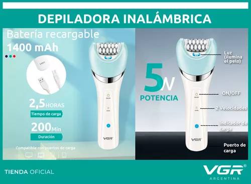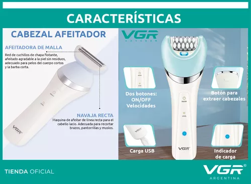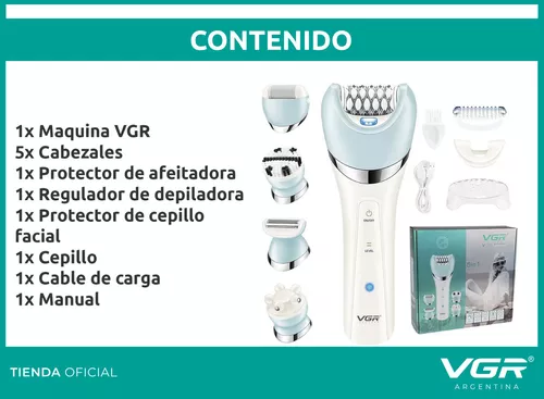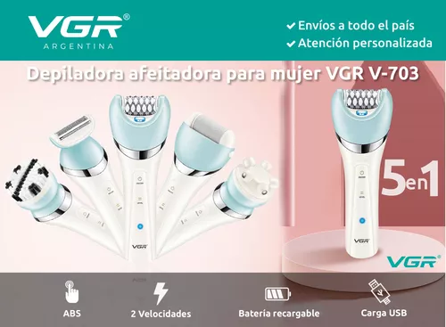 Kit Depiladora Afeitadora Exfoliador Inalambrico Vgr V-703 Blanco y Verde