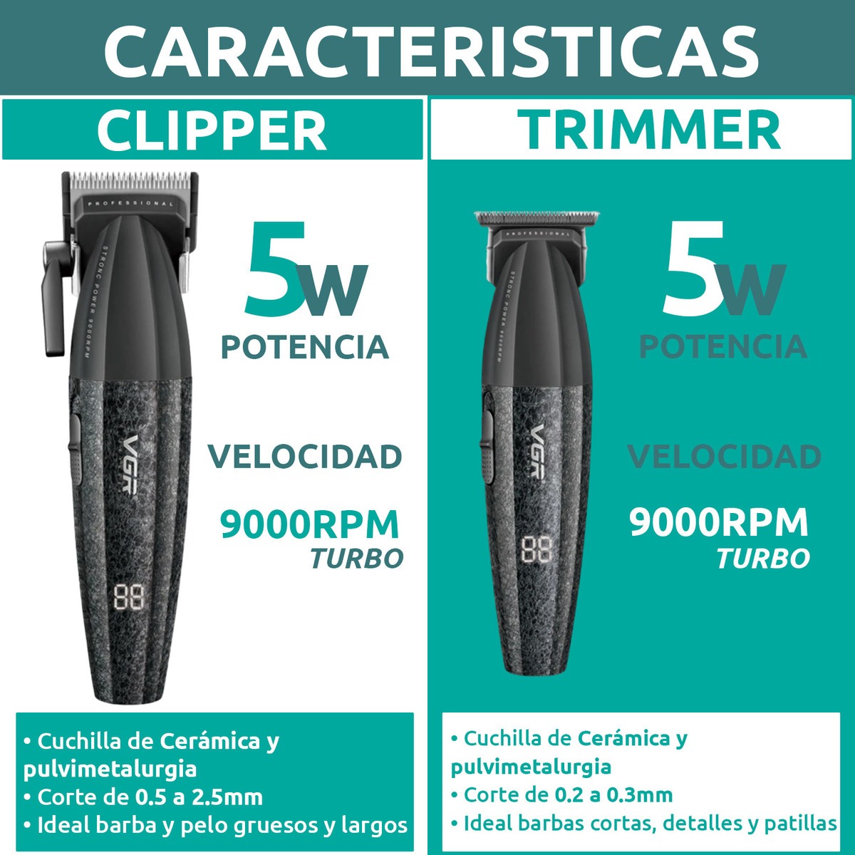 Kit Máquina Barbería Pro Clipper Trimmer VGR V-640 9000 Rpm