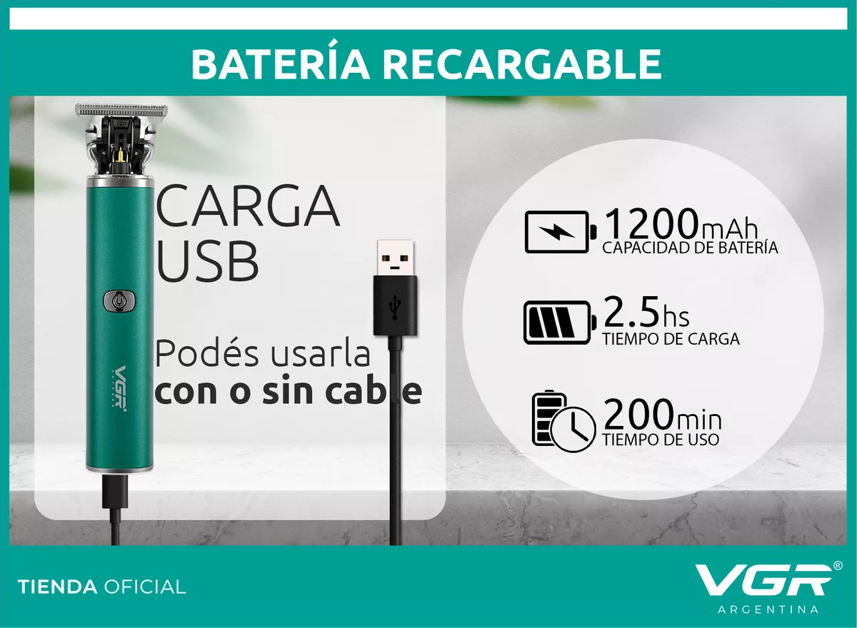 Maquina Corta Pelo Barba Vgr V-272 Recargable Usb 10 Medidas Negro
