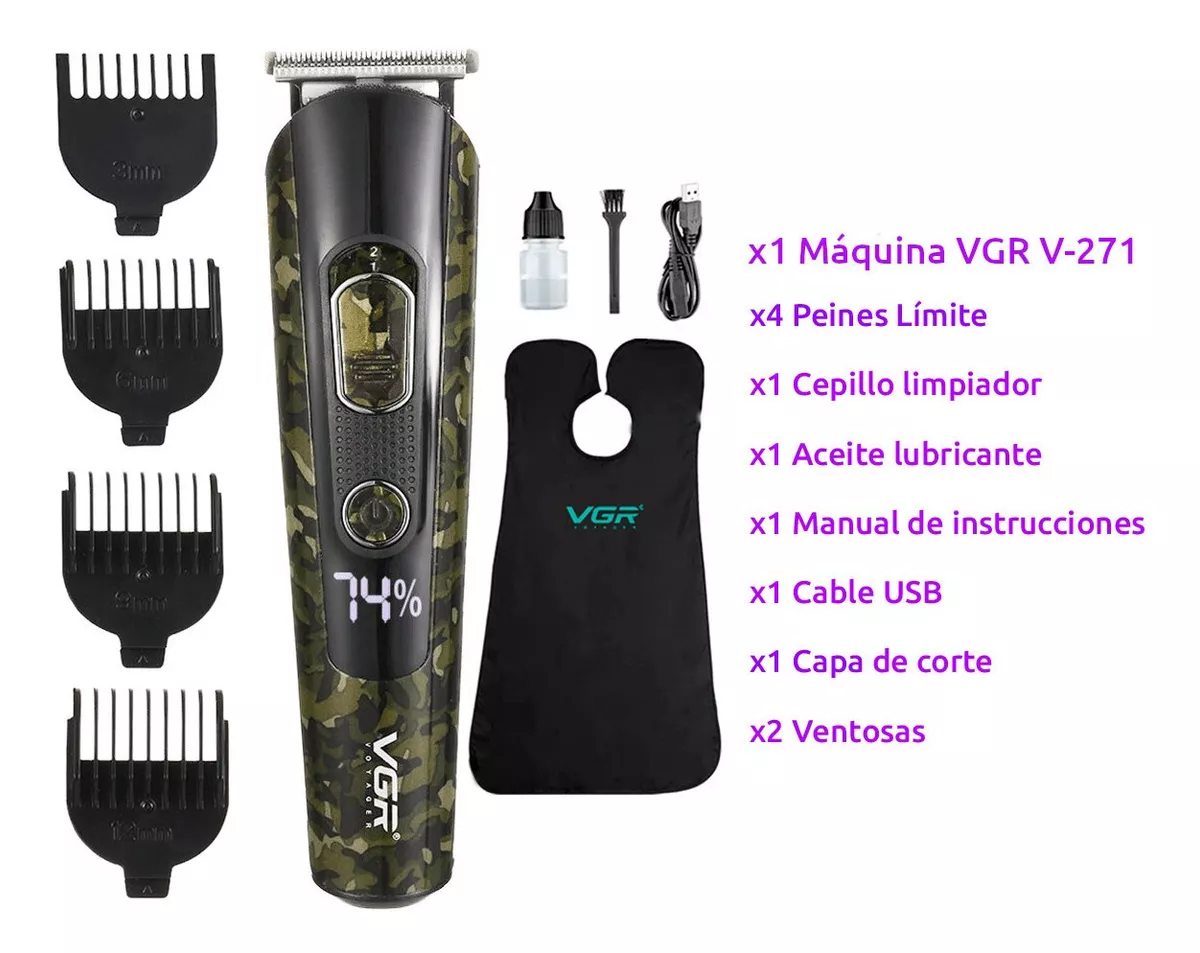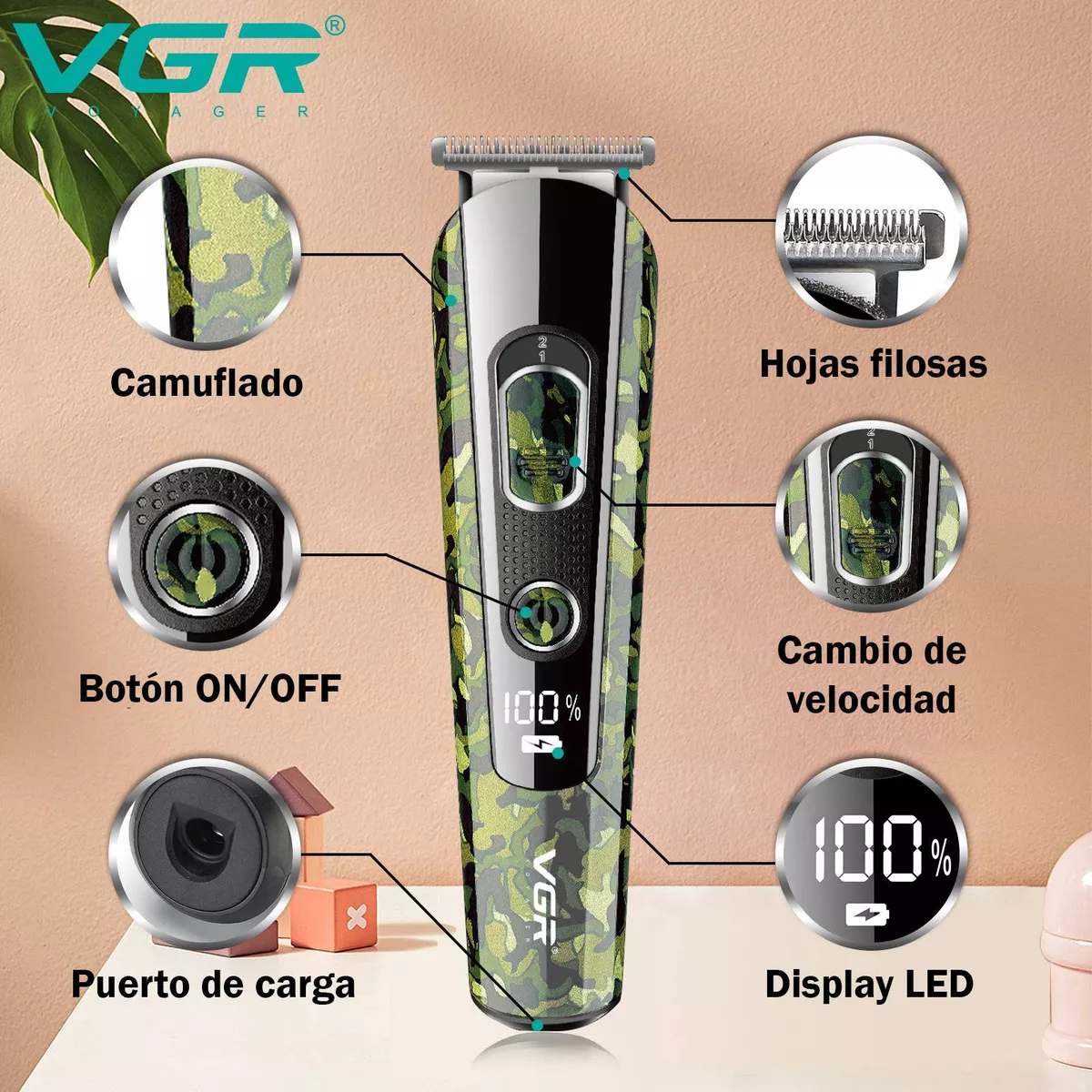 Maquina Cortar Pelo Barba Vgr V-271 Patillera Camuflada + Capa Corte