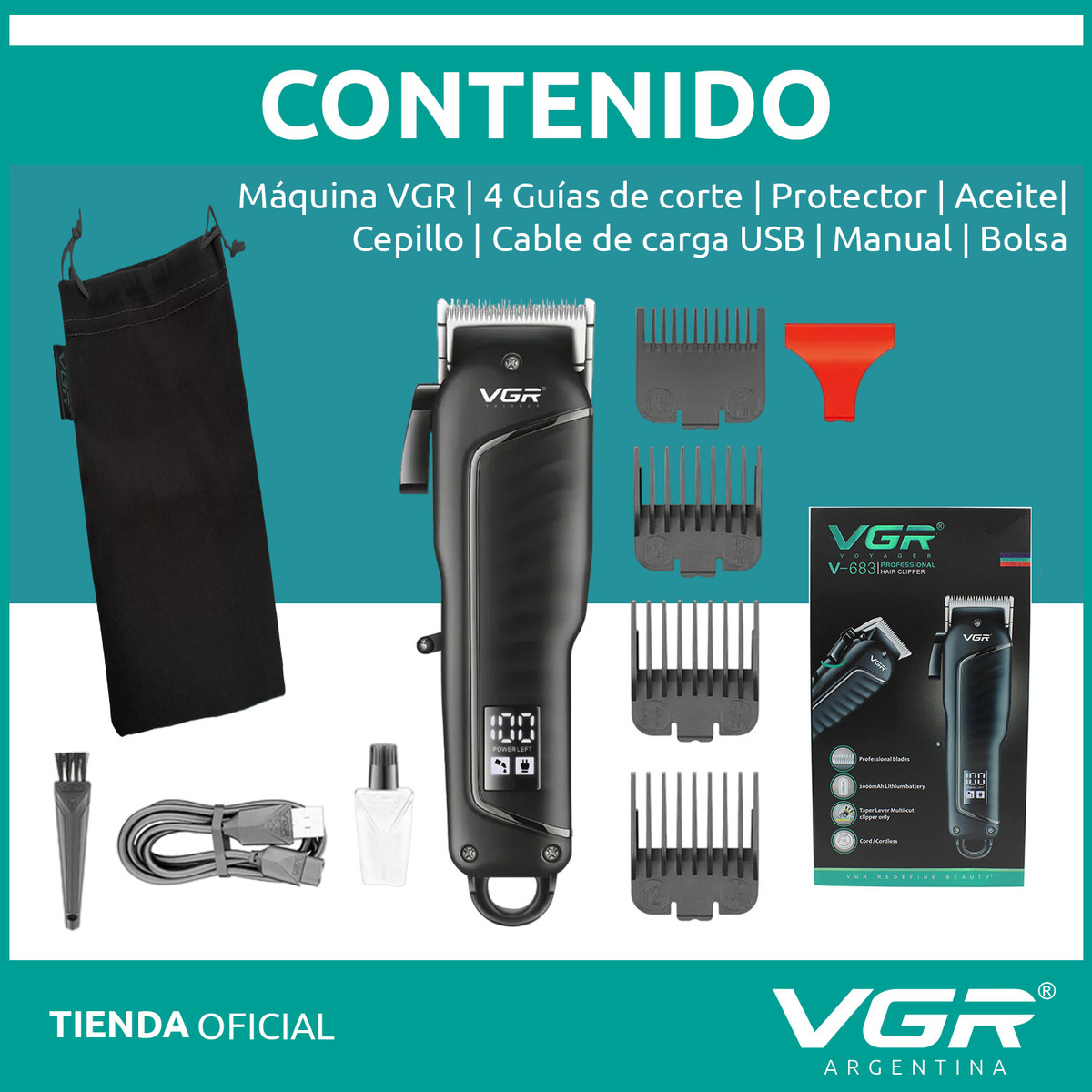 La VGR V-683 es una máquina cortadora de cabello inalámbrica y profesional para hombres. Es recargable y tiene un tiempo de uso de 200 minutos.