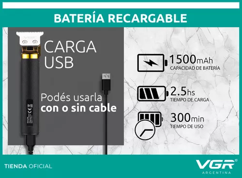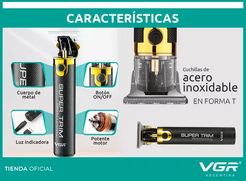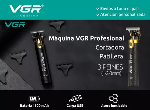 Maquina Corte Pelo Patillera Trimmer Vgr V-082 Recargable Negro/Plateado