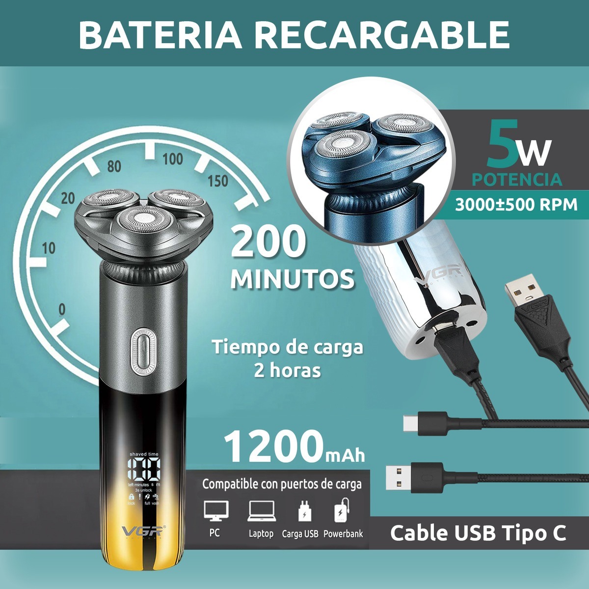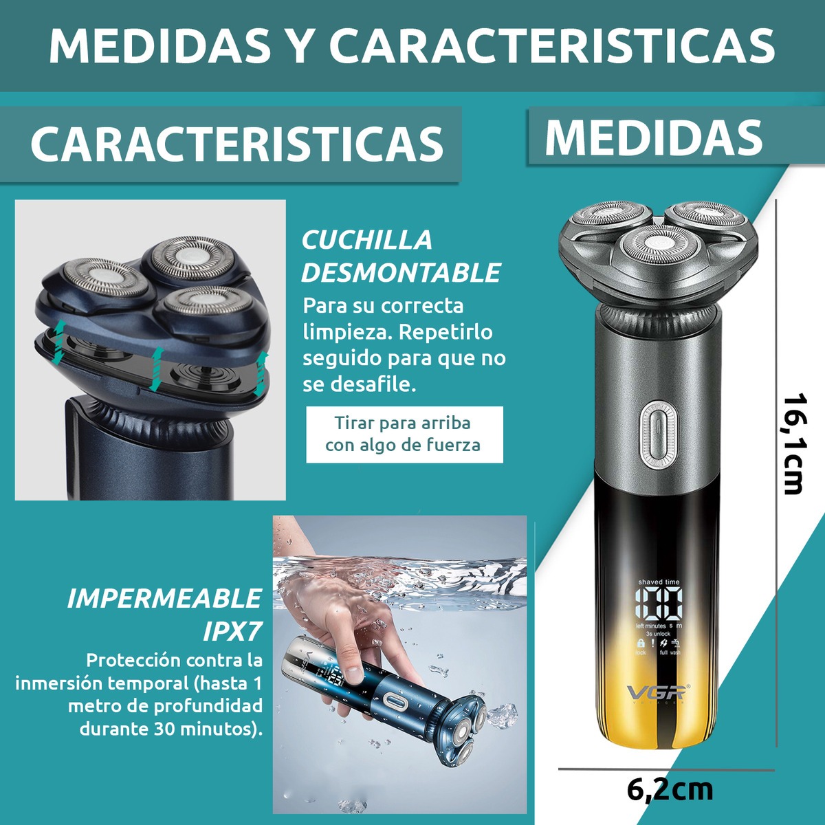Repuesto Shaver Eléctrica 2en1 Vgr V-392 Afa Argentina Ipx7