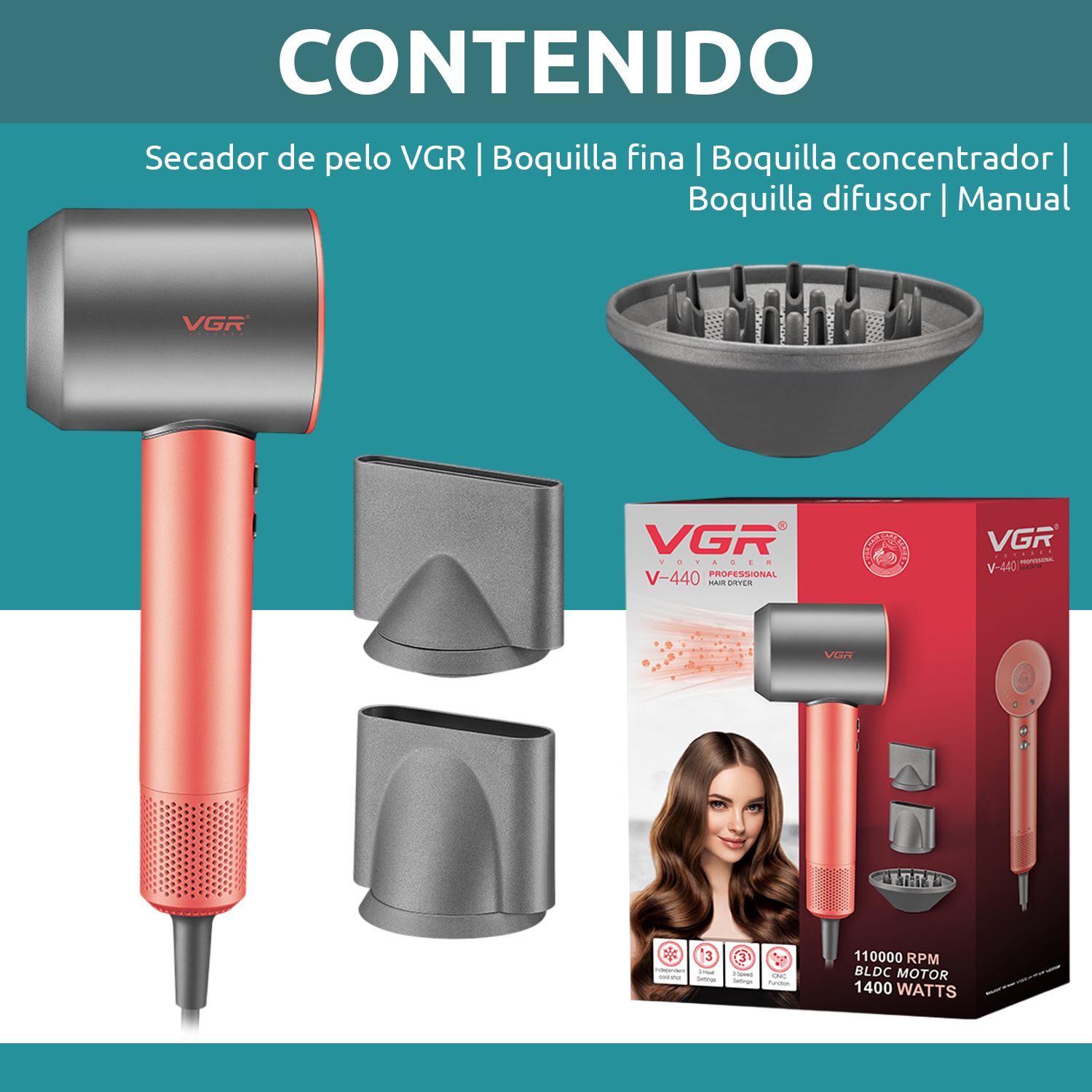 SECADOR DE PELO PROFESIONAL VGR V-440 IONICO POTENCIA 1400W MOTOR BLDC
