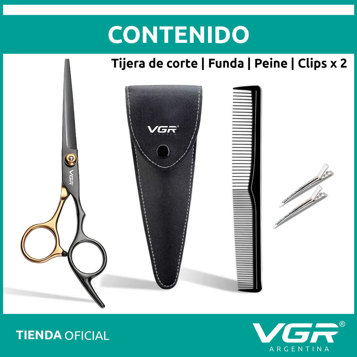 Set de Tijeras Peluquería VGR 5Pcs Acero Inoxidable Estuche