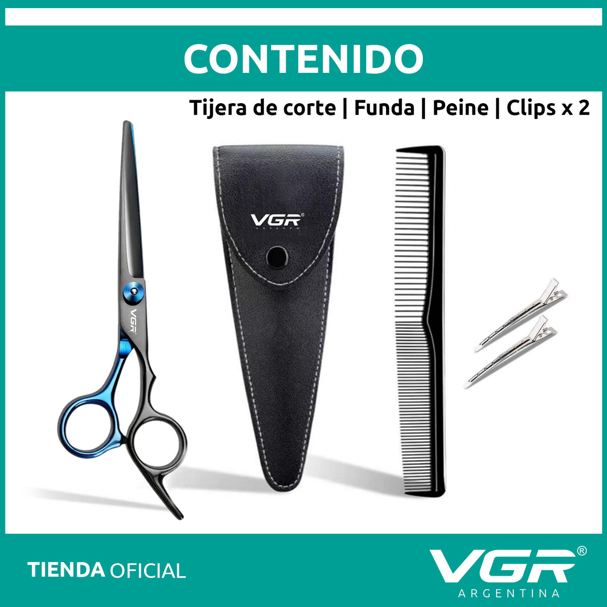 Set de Tijeras Peluquería VGR 5Pcs Acero Inoxidable Estuche