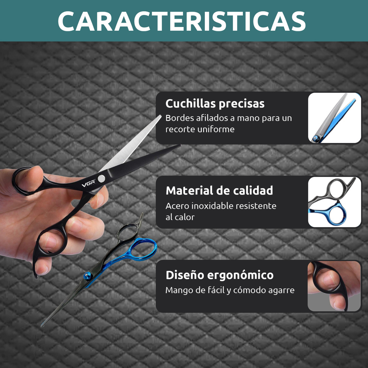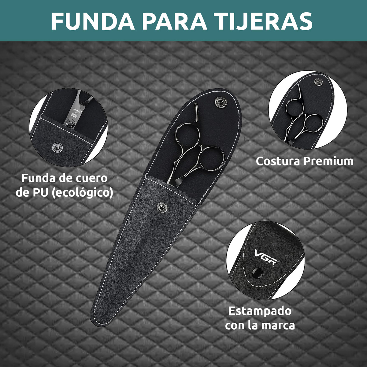 Tijera Barbería Peluquería Corte Recto Profesional Vgr Funda