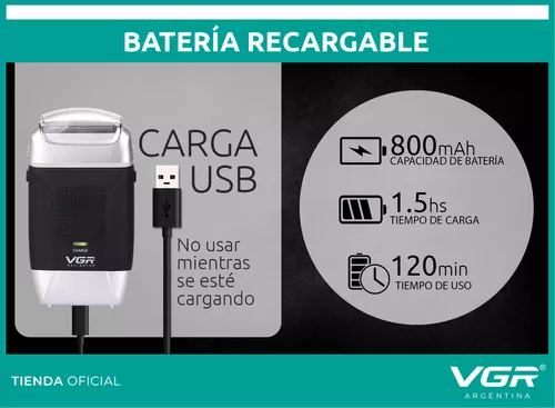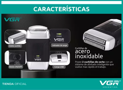 [V-307-COR-NEGPLA] Maquina Corta Pelo Rasuradora Shaver Recargable Vgr V-307 – Negro Plateado
